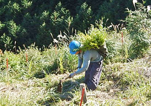 十分に成長した木を伐って使い、その後に苗木を植えて再び育てます。手入れを進めることが、森林を育てることにつながります。