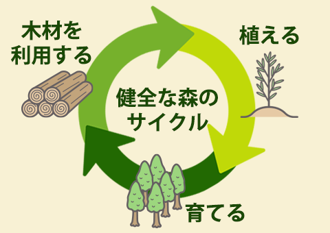 緑豊かな森林を保つためには、間伐材をはじめとした県内の木材を使い、間伐を促進し、森林を循環させていくことが必要です。