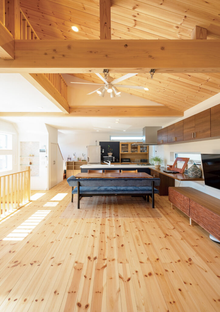 自然素材 (県産材・国産材)を 使い、夏涼しく、冬暖かい 暮らしをデザイン。 木の家で癒され、心地いい自然の 風を取り込み、 断熱と気密にも配慮した健康に良い家を造っています。