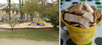 県産木材を使用してウッドチップを製造しており、 お庭やドッグランに好評です。
